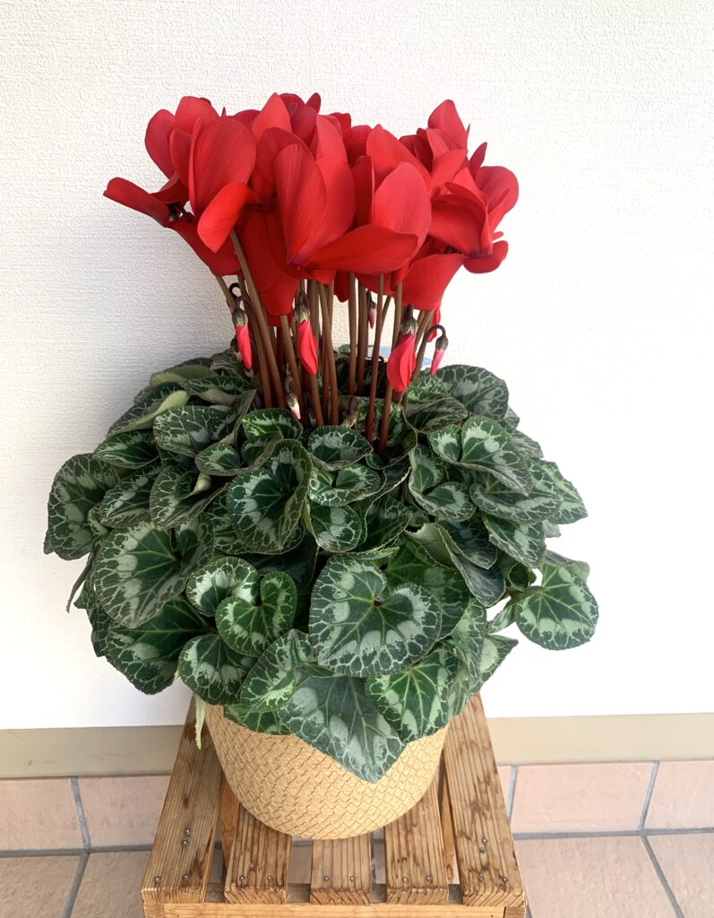 毎年この季節に入り口にシクラメンを飾っています。寒い季節に暖かな色合いのシクラメンが似合います。